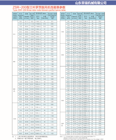 - 2020-11-02羅茨風機200型號參數表「山東章瑞機械」